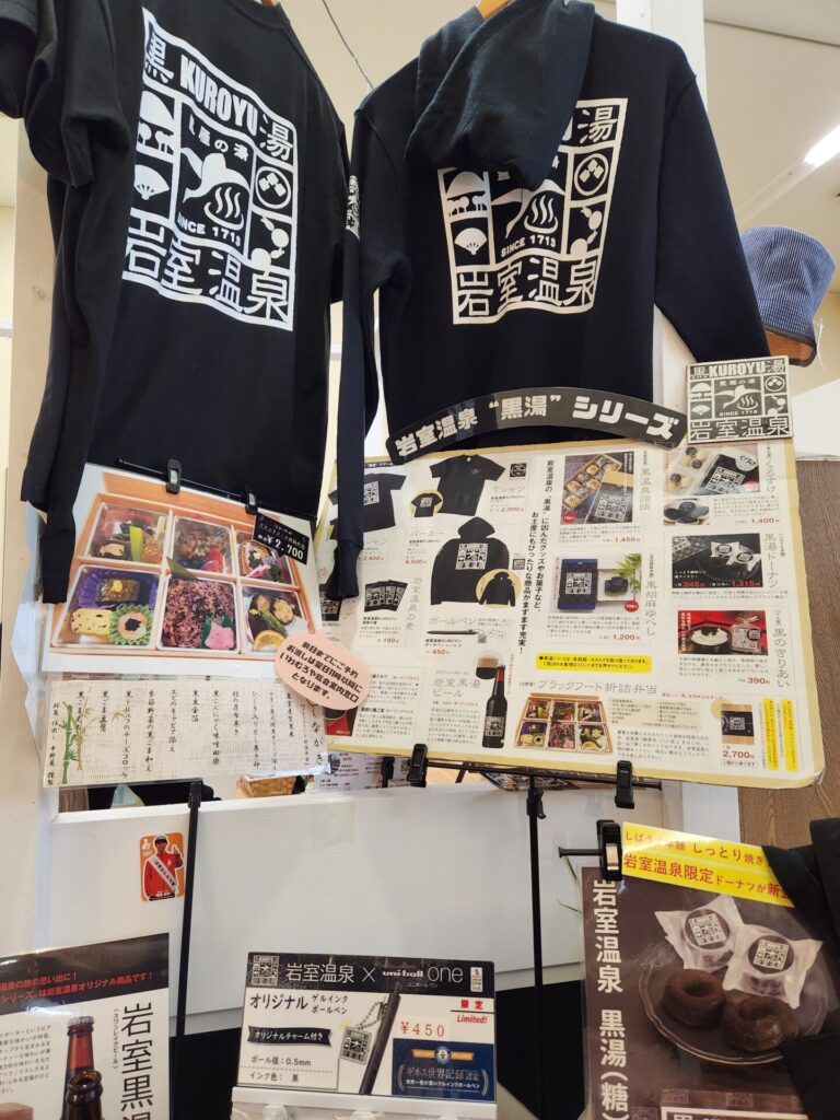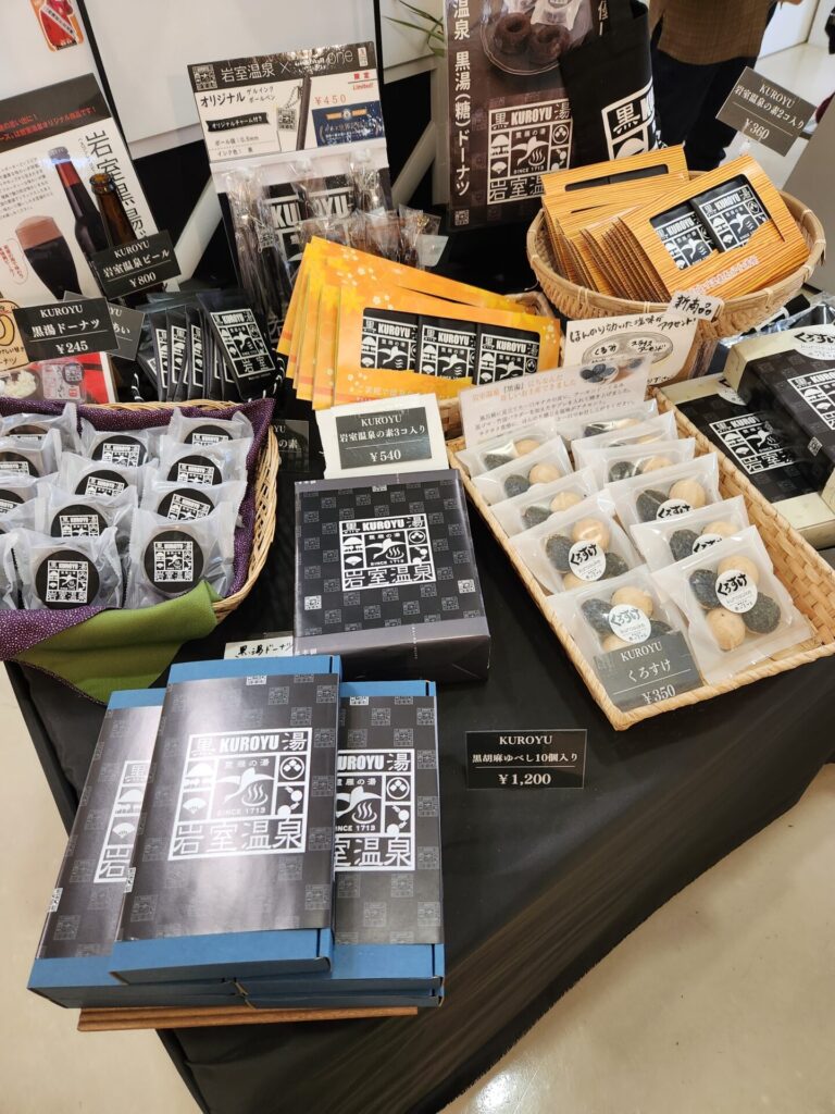 いわむろや様には、弊社の入浴剤の他にも、黒湯にちなんだお菓子やグッズなど、たくさんの商品が販売されていました!
