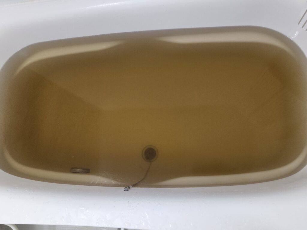 こちらは岩室温泉の黒湯をイメージした商品となっています。そのためこちらの色味となっています。藤色の入浴剤が茶色(黒)になるなんて面白いですね!化学の不思議です。