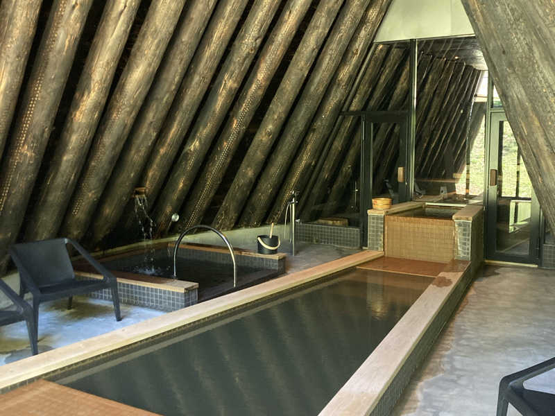 サウナと温泉が一体となった「呼吸の間」も人気です。「サウナシュラン2025」を受賞されています。褐色の源泉が注がれる湯船は深さが130㎝もあるそうで、立ったまま全身に水圧を感じて湯を浴びる感覚が新鮮です。150㎝のブログ投稿者は顔だけ出す感じになりそうです(笑) サウナは事前予約が必要なので、知内温泉ホームページまたはSNSにて予約をしてください。