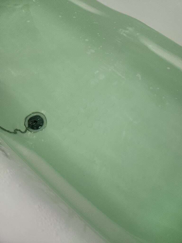 お湯に入浴剤を入れた瞬間、しゅわしゅわと音を立てて緑色の綺麗な水面が広がりました。