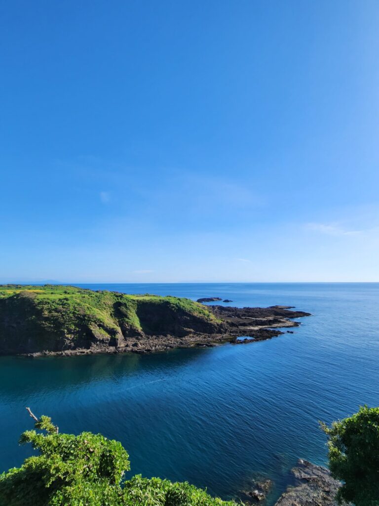 小木半島エリア:深浦の海岸です。空も海も青くて、絶景です。
